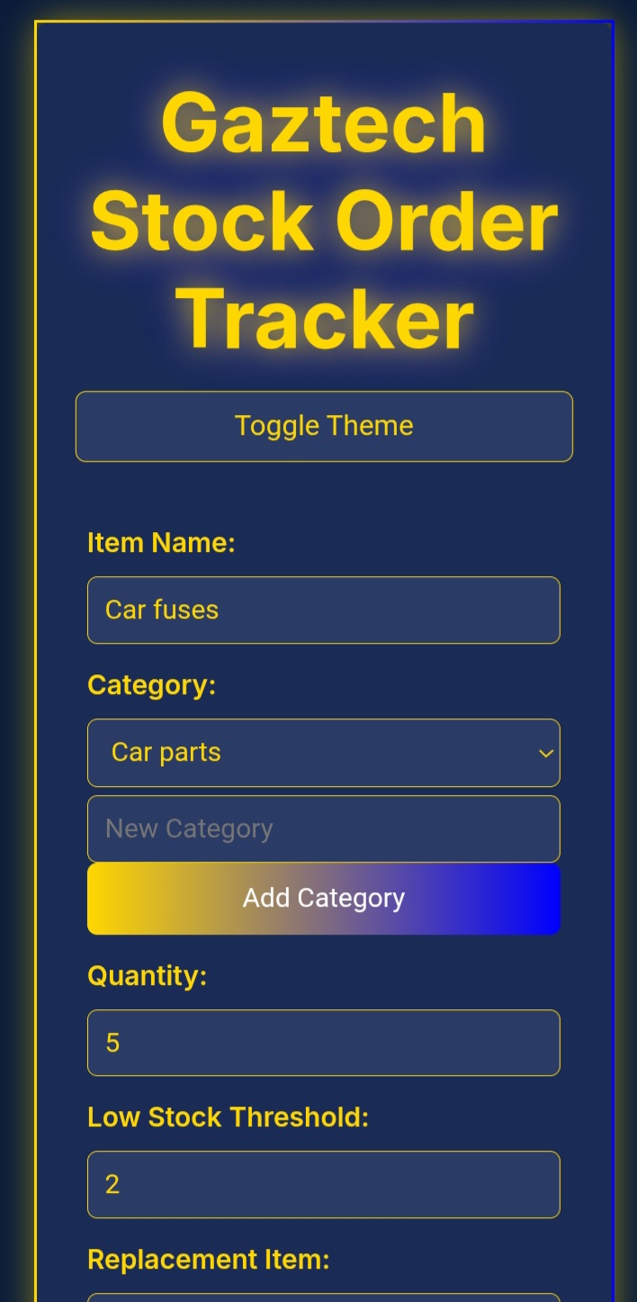 Gaztech Stock Order Tracker — Modern, Zero-Setup Inventory Solution